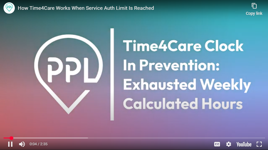 Time4Care is PPL’s electronic visit verification (EVV) mobile app that personal assistants use to clock in and out of their shifts, view pay information, and manage their time. Consumers use Time4Care to approve time for their PAs.